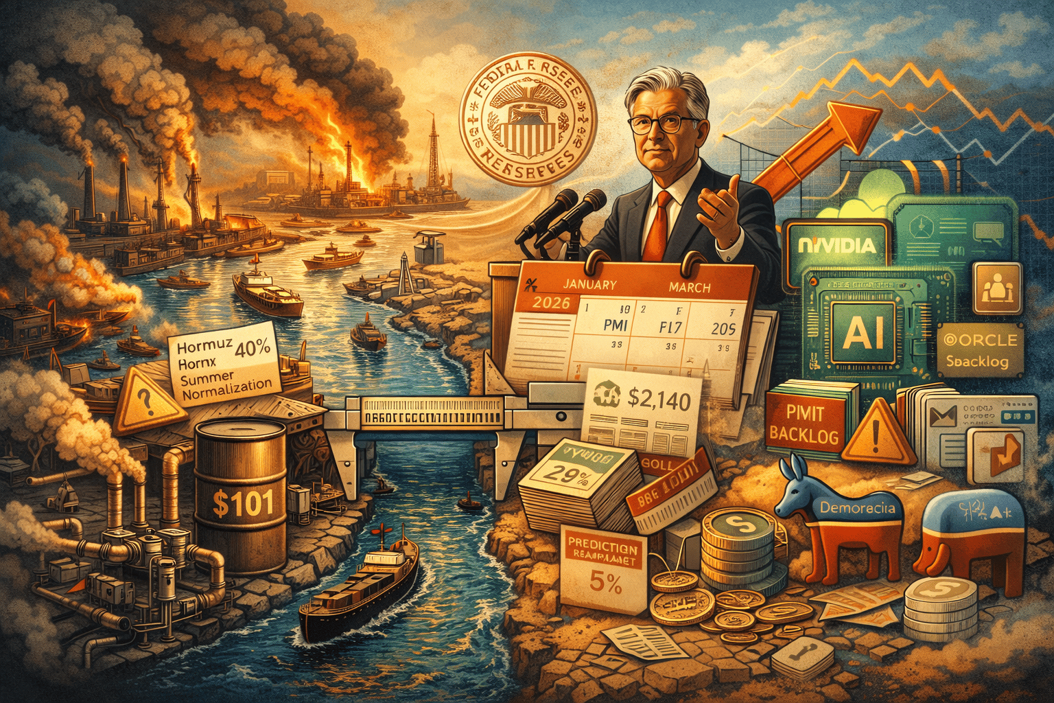 Oil above $100 pushed headline inflation higher. Negative payrolls in February signaled a weakening labor market. Those forces don't resolve each other. They compete. Cutting into an oil shock risks reigniting the inflation fight the Fed spent two years winning. Holding into a labor slowdown risks the 2025 slowdown repeating.