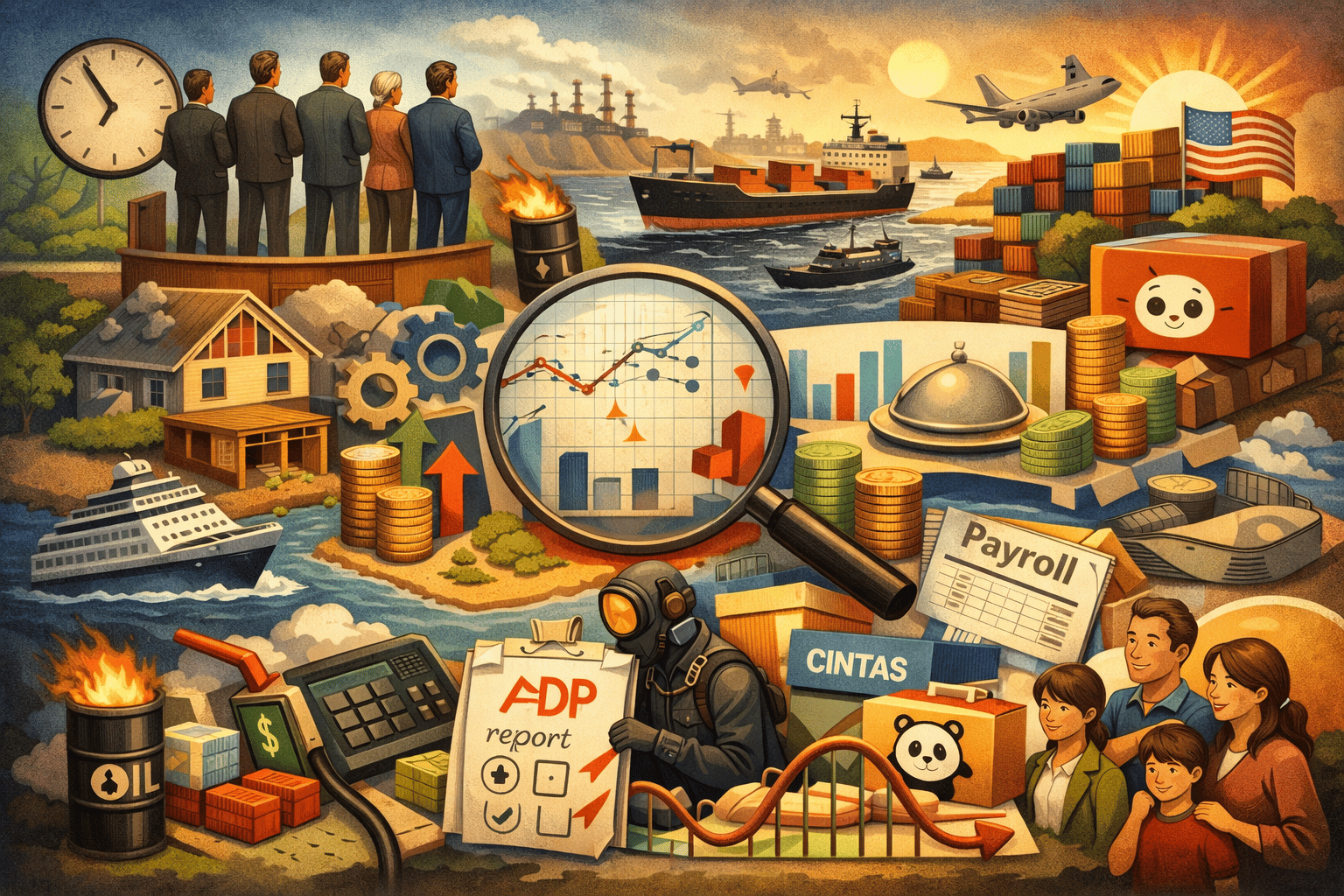 Import prices will show whether oil and tariffs are compounding into the same cost channel. Earnings from Carnival, KB Home, Paychex, Cintas, and PDD will describe the shock from inside the businesses absorbing it.